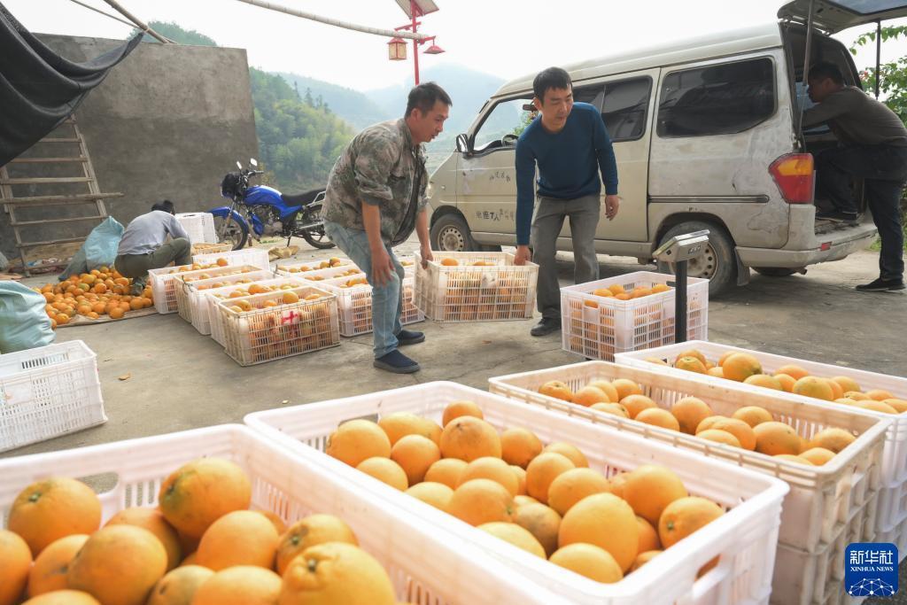 11月24日,古田縣黃田鎮果農準備將剛采摘的臍橙裝運上車(chē)。