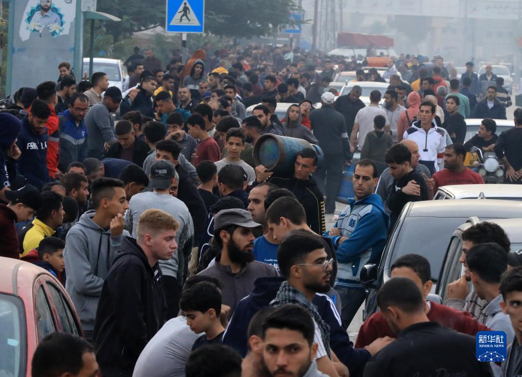 11月25日,在加沙地帶南部城市汗尤尼斯,巴勒斯坦人在充完天然氣后準備返回。