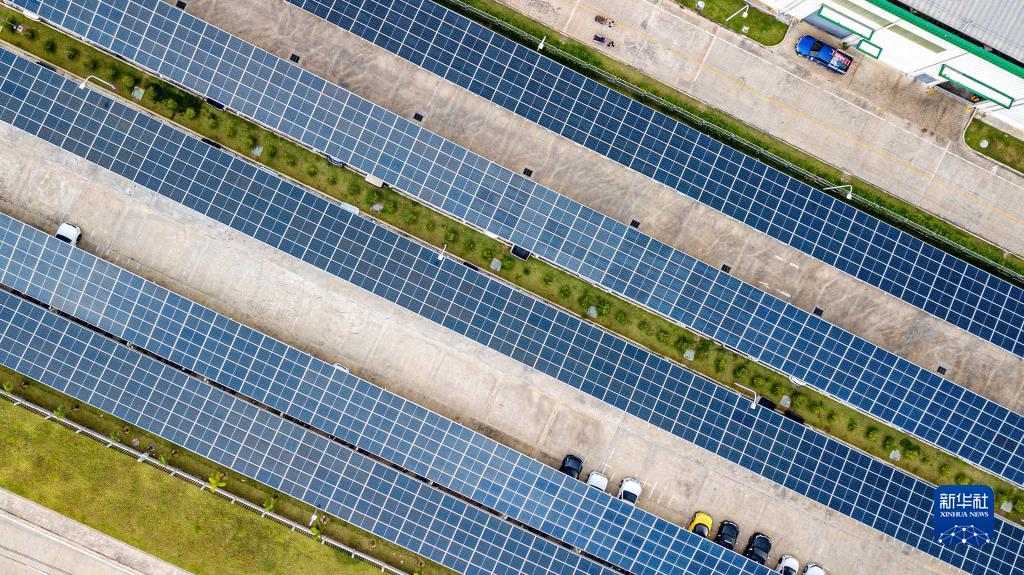 這是11月7日在泰國春武里府拍攝的工廠(chǎng)屋頂光伏發(fā)電項目現場(chǎng)(無(wú)人機照片)。