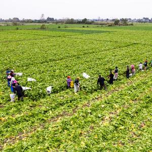 近日,湖南省益陽(yáng)市南縣種植的榨菜迎來(lái)豐收,村民們趁著(zhù)晴好天氣抓緊采收,削根、去葉、裝袋,田間地頭一派忙碌景象。今年南縣榨菜種植面積約2萬(wàn)畝,總產(chǎn)值有望達到5000萬(wàn)元。
