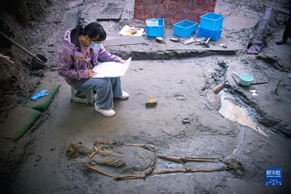 11月23日,工作人員在溫州朔門(mén)古港遺址考古發(fā)掘現場(chǎng)工作。