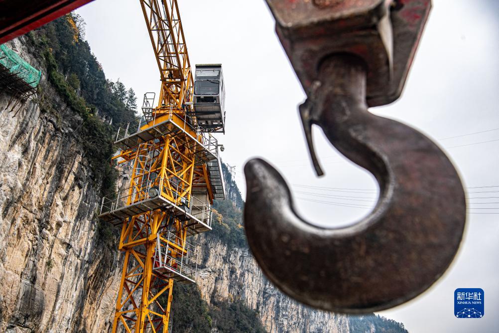 11月26日,在位于重慶市酉陽(yáng)土家族苗族自治縣龔灘鎮的阿蓬江大橋施工建設現場(chǎng),工人正在現場(chǎng)作業(yè)。