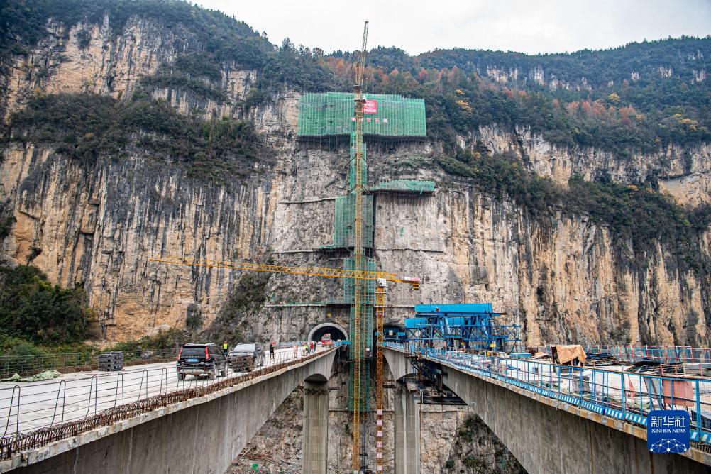 11月26日,在位于重慶市酉陽(yáng)土家族苗族自治縣龔灘鎮的阿蓬江大橋施工建設現場(chǎng),工人正在現場(chǎng)作業(yè)。