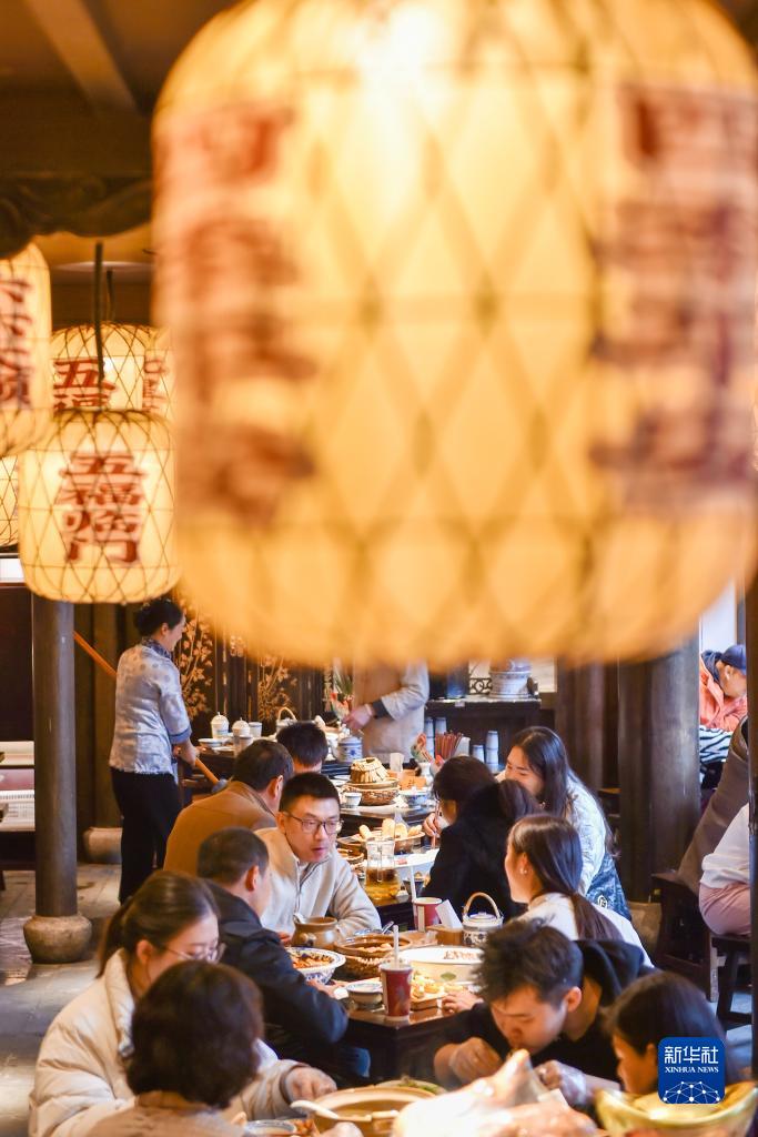 11月26日,人們在江蘇省南京市老門(mén)東景區一家餐廳用餐。