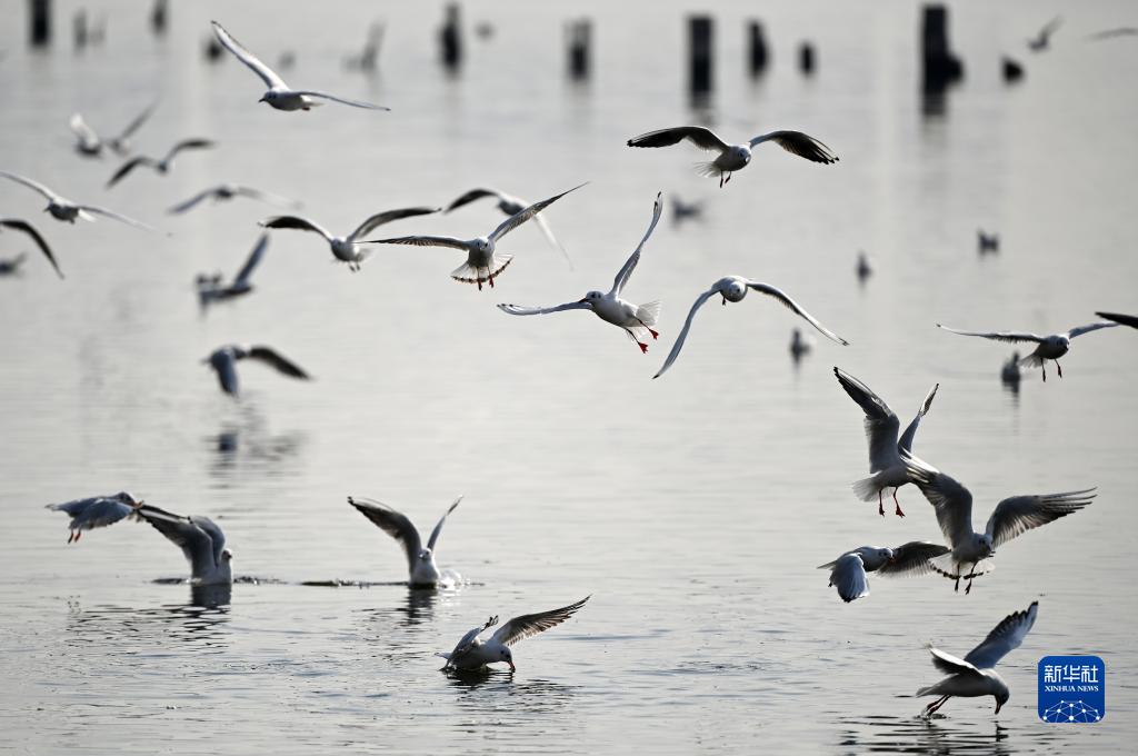 初冬時(shí)節,天津市迎來(lái)候鳥(niǎo)遷徙高峰期,不少海鷗從寒冷的西伯利亞遷徙到濱海新區老碼頭附近的海河岸邊越冬,吸引游人前往觀(guān)賞。
