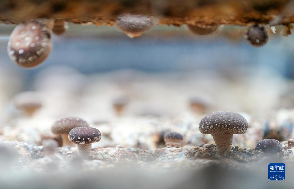 在平山縣食用菌制菌中心的香菇大棚內拍攝的香菇(11月25日攝)。