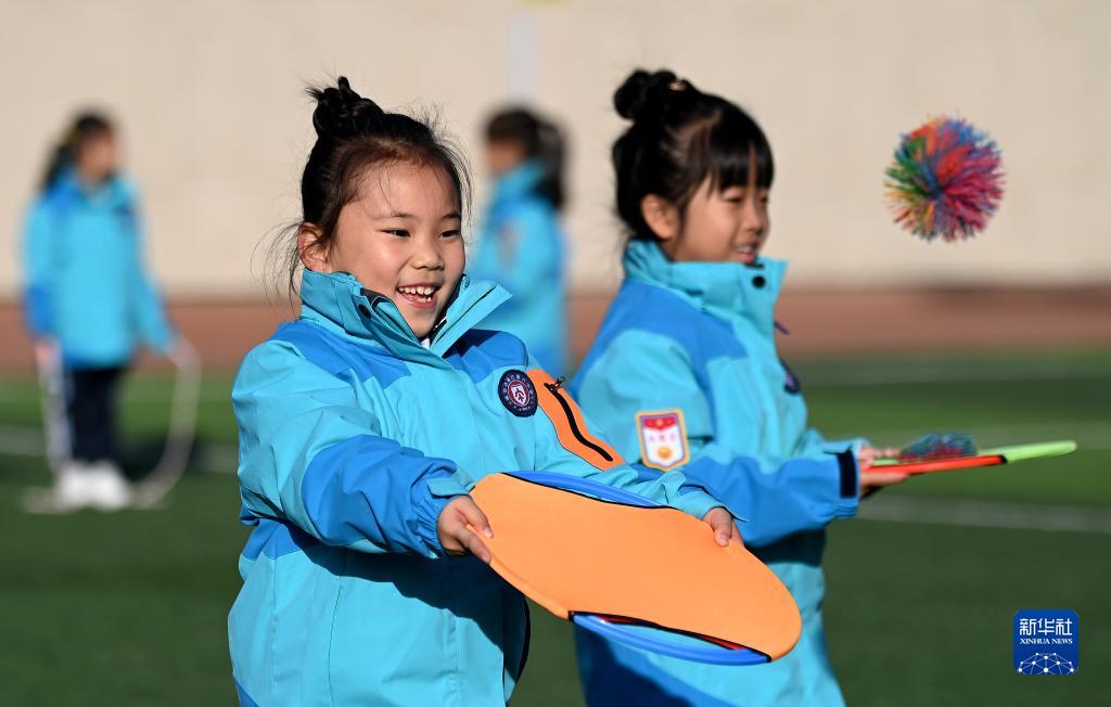 11月27日,西安市曲江第六小學(xué)學(xué)生在進(jìn)行課間活動(dòng)。