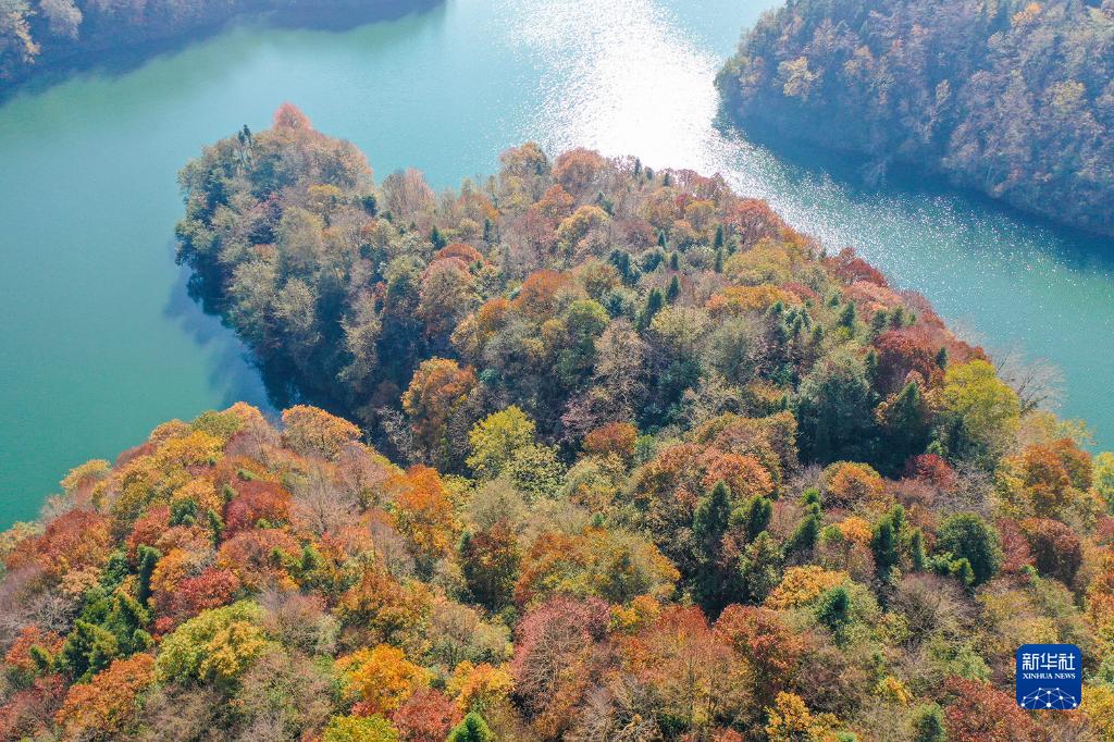 11月27日,在貴州省畢節市百里杜鵑管理區鵬程街道移山湖拍攝的景色(無(wú)人機照片)。