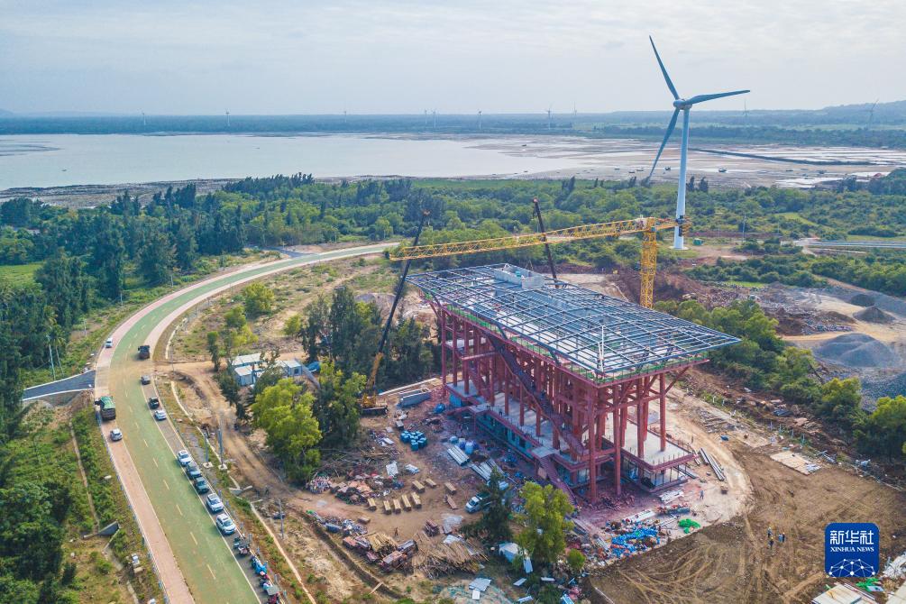 11月26日在海南省儋州市拍攝的建設中的“火山海岸”驛站和海南環(huán)島旅游公路(無(wú)人機照片)。