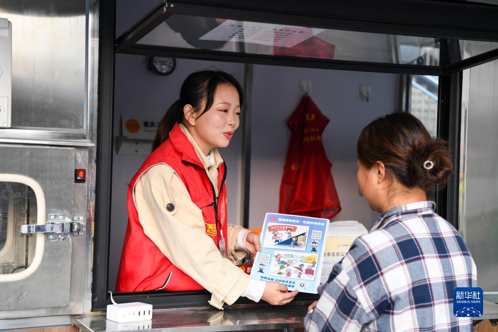 11月28日,余白楊(左)在正街社區向居民開(kāi)展防詐宣傳。