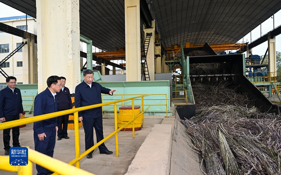 12月14日至15日,中共中央總書(shū)記、國家主席、中央軍委主席習近平在廣西考察。這是14日下午,習近平在來(lái)賓東糖鳳凰有限公司考察。新華社記者 謝環(huán)馳 攝