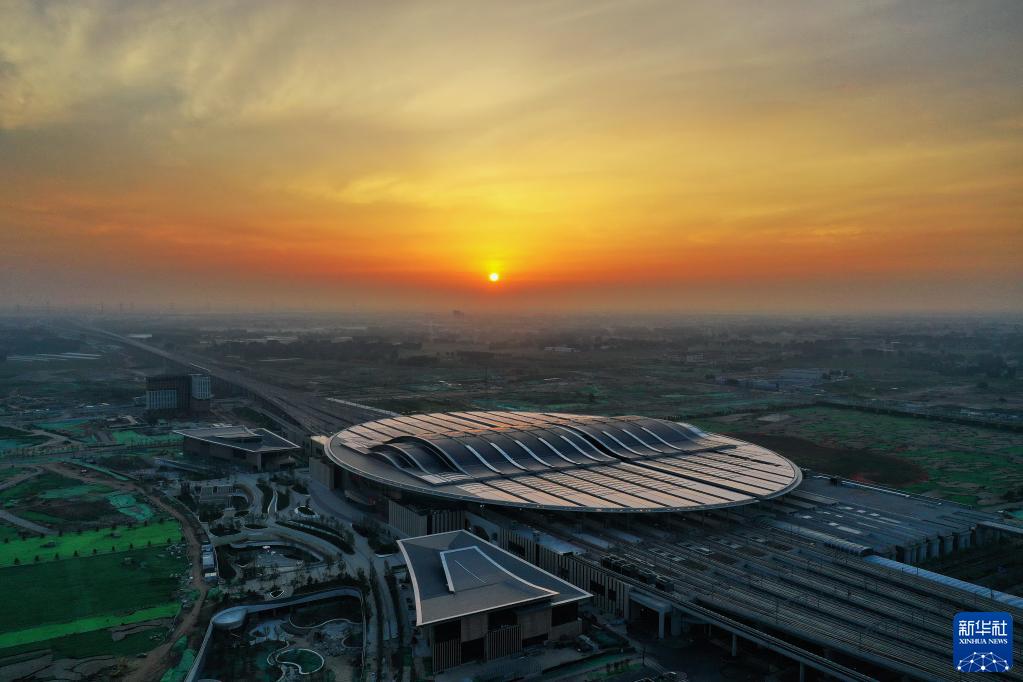這是京雄城際鐵路雄安站(7月1日攝,無(wú)人機照片)。新華社記者 牟宇 攝