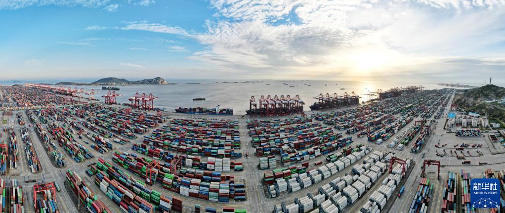俯瞰上海洋山港碼頭(4月6日攝,無(wú)人機照片)。新華社記者 方喆 攝