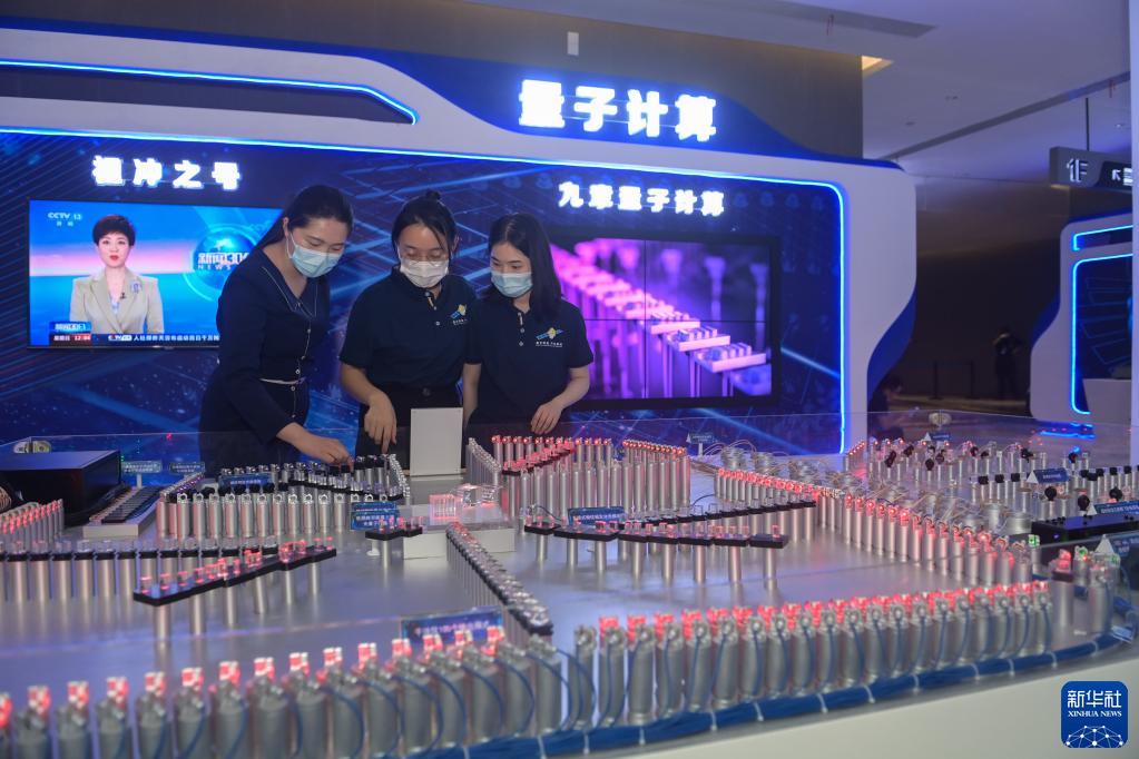 參會(huì )人員在2021量子產(chǎn)業(yè)大會(huì )上參觀(guān)“九章”量子計算原型機模型(9月18日攝)。新華社記者 韓旭 攝