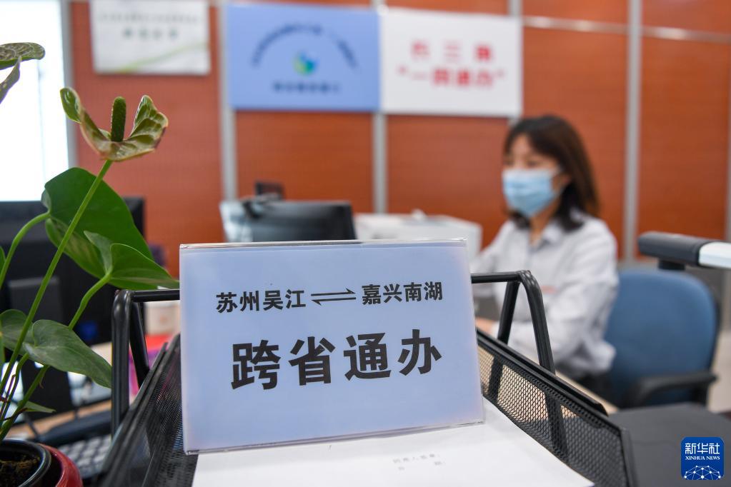 這是江蘇省蘇州市吳江區政務(wù)服務(wù)中心長(cháng)三角“一網(wǎng)通辦”服務(wù)窗口(2020年5月28日攝)。新華社記者 李博 攝