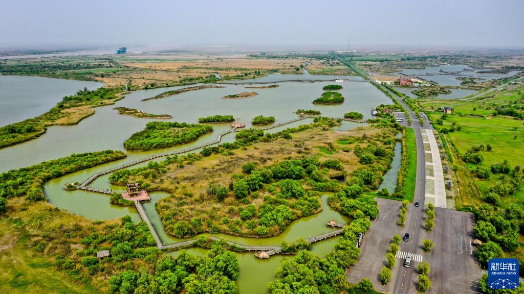 這是山東黃河三角洲國家級自然保護區景色(5月13日攝,無(wú)人機照片)。新華社記者 郭緒雷 攝