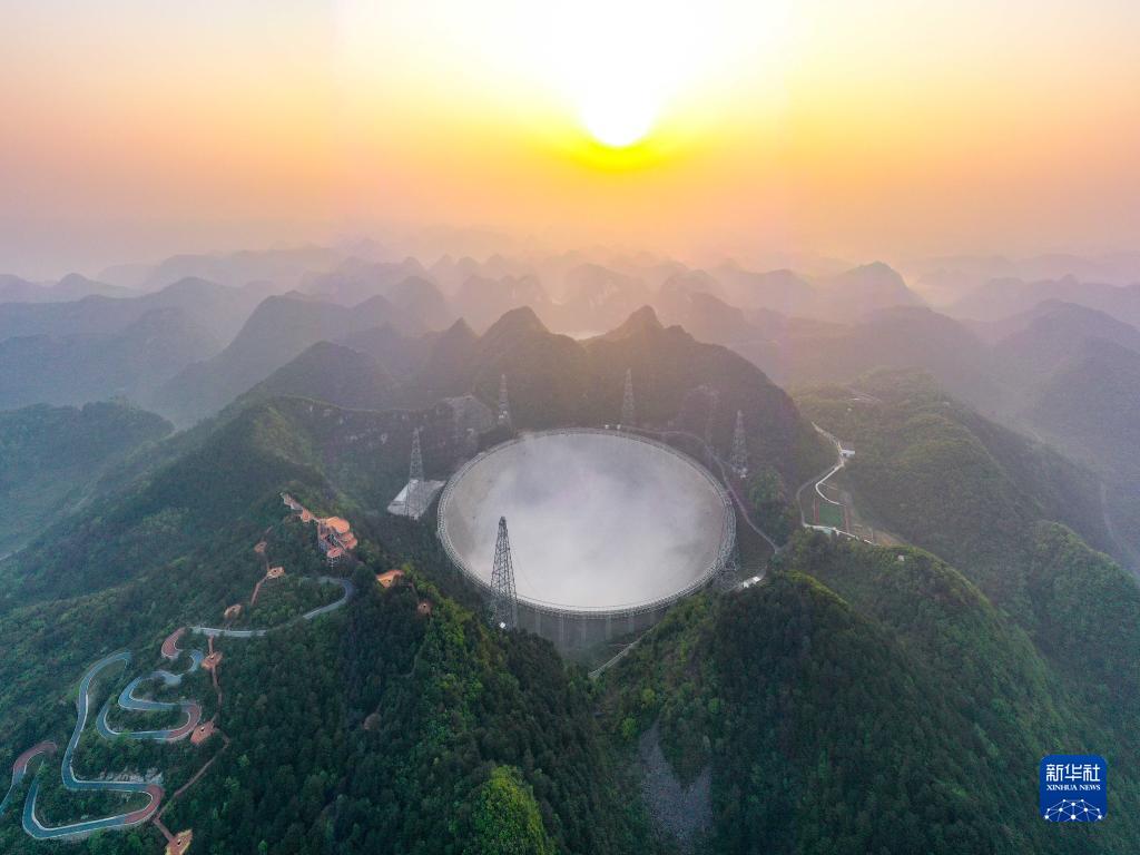 3月31日清晨拍攝的“中國天眼”全景(維護保養期間拍攝,無(wú)人機照片)。新華社記者 歐東衢 攝