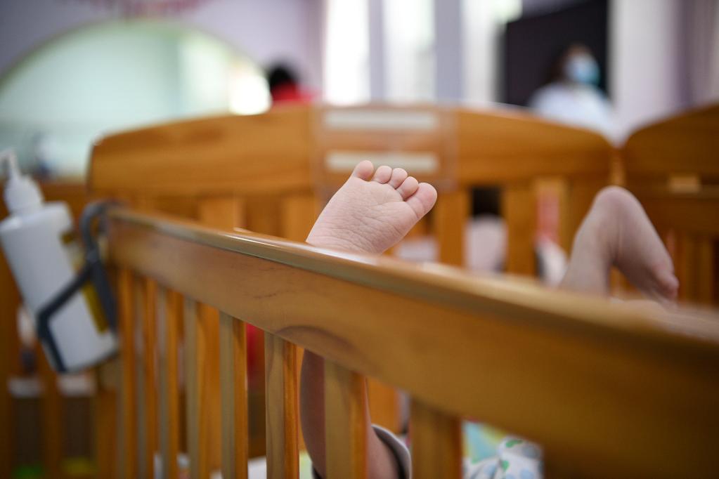 寧夏兒童福利院內,午睡時(shí)間,一名孩子把腳搭在欄桿上。新華社記者 王鵬 攝