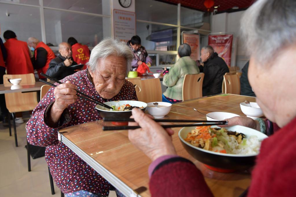 2021年11月24日,在南昌市西湖區桃花鎮河畔社區愛(ài)心餐廳,社區居民在就餐。 新華社記者 彭昭之 攝