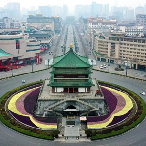 2021年12月23日拍攝的西安鐘樓(無(wú)人機照片)新華社記者劉瀟 攝