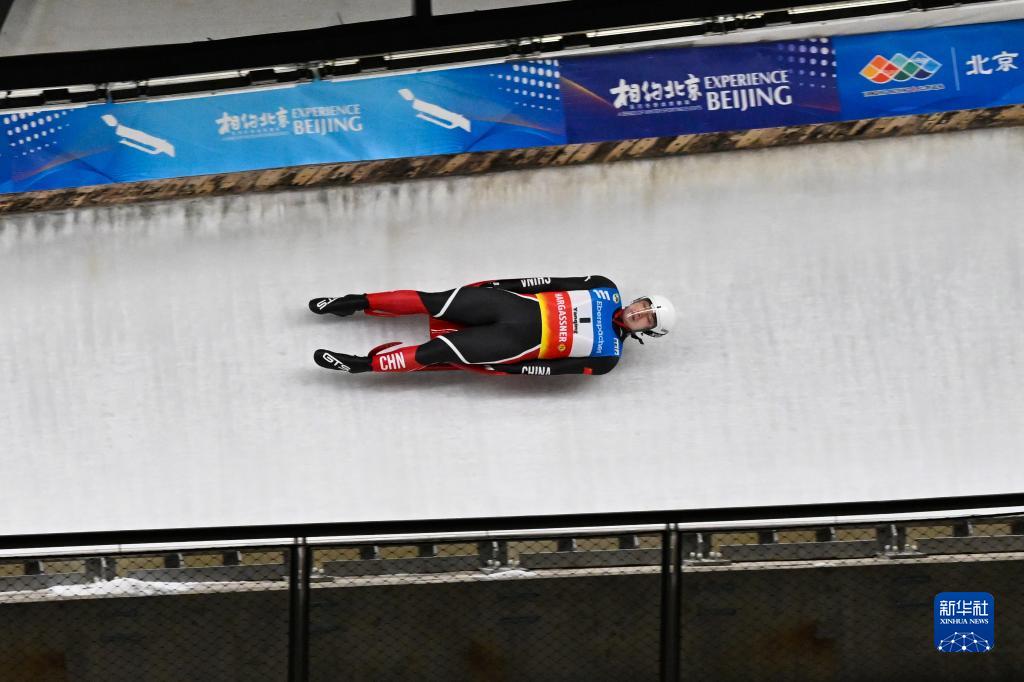 2021年11月20日,中國選手范鐸耀在“相約北京”2021/2022國際雪橇聯(lián)合會(huì )雪橇世界杯男子單人雪橇比賽中。新華社記者 陳益宸 攝