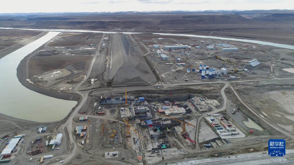 這是2021年8月26日拍攝的阿根廷“基塞”水電站項目施工現場(chǎng)(無(wú)人機照片)。新華社發(fā)(中國能建葛洲壩集團阿根廷“基塞”水電站項目部供圖)