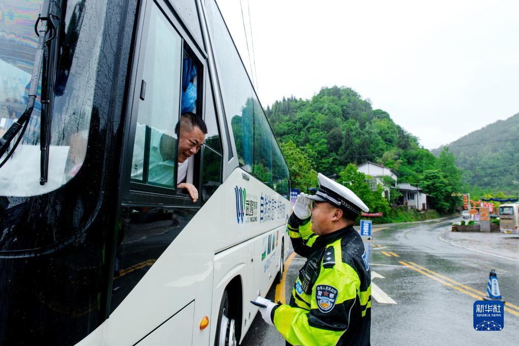 交警羅旦華在工作中(資料照片)。新華社發(fā)