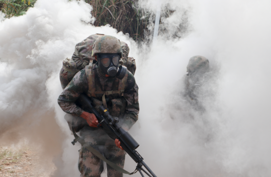 ↑快速通過(guò)染毒地帶。張廣東 攝