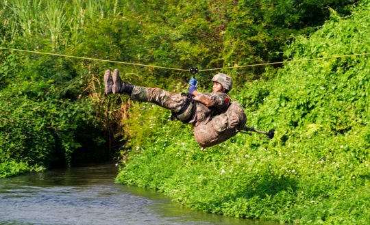 怎么辦?張飛昊需要迅速決斷。按照慣例是重新設置繩索,但耗時(shí)太長(cháng),容易被對手趕超?!芭肋^(guò)去!”他果斷下令,第一名隊員依靠過(guò)硬的身體素質(zhì),攀爬繩索過(guò)了河。