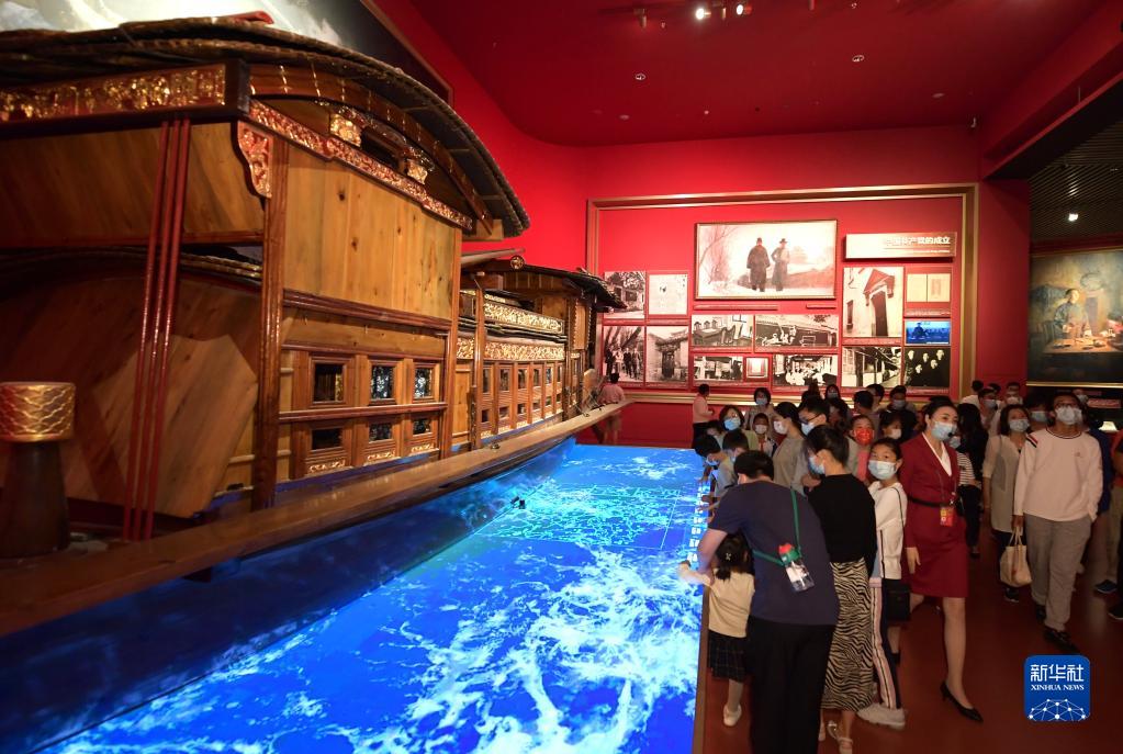 觀(guān)眾在中國共產(chǎn)黨歷史展覽館參觀(guān)(2021年10月1日攝)。新華社記者 李賀 攝