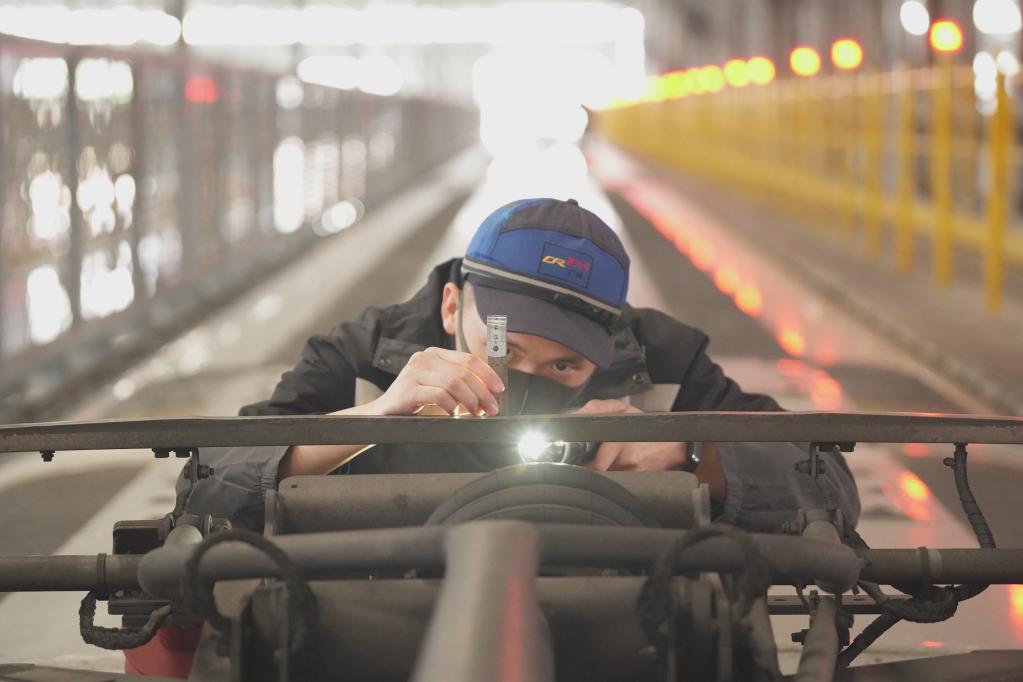 車(chē)要安全。運行了一天的列車(chē),都要按規定進(jìn)入檢修場(chǎng)進(jìn)行檢修。車(chē)輛檢修的工作量巨大,每一個(gè)螺絲都要檢查清楚,以確保列車(chē)良好運行,平均每組列車(chē)要檢測約1.7萬(wàn)個(gè)部件項點(diǎn),4個(gè)人同時(shí)作業(yè)也要約2.5小時(shí)才能完成。春運期間,廣州動(dòng)車(chē)段每天要檢修108組動(dòng)車(chē)。因為大多數列車(chē)都要夜間停運后才入庫進(jìn)行檢修,只能夜間活動(dòng)而變成“夜貓子”的動(dòng)車(chē)機械師們,在黑夜中守護安全。