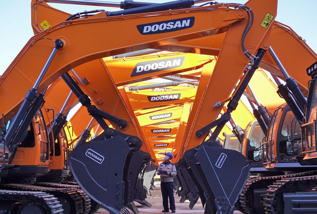 2022年1月17日,在山東煙臺開(kāi)發(fā)區一家工程機械有限公司,工作人員對出廠(chǎng)車(chē)輛進(jìn)行檢查。新華社發(fā)(唐克攝)