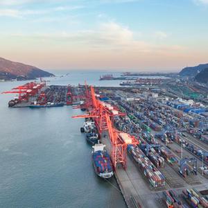 江蘇連云港港集裝箱碼頭一派繁忙(2021年12月1日攝,無(wú)人機照片)。新華社發(fā)(司偉攝)