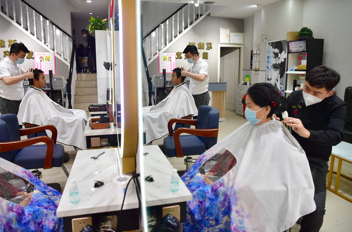 1月20日,在西安曲江新區一家理發(fā)店內,理發(fā)師正在為市民理發(fā)。新華社記者邵瑞攝