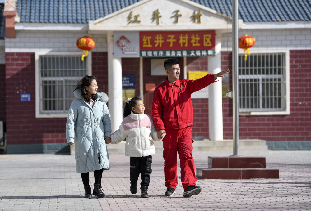 在他決定春節期間留守村里值班后,妻子帶著(zhù)女兒前來(lái)陪他,一家人開(kāi)始了駐村的新年生活。