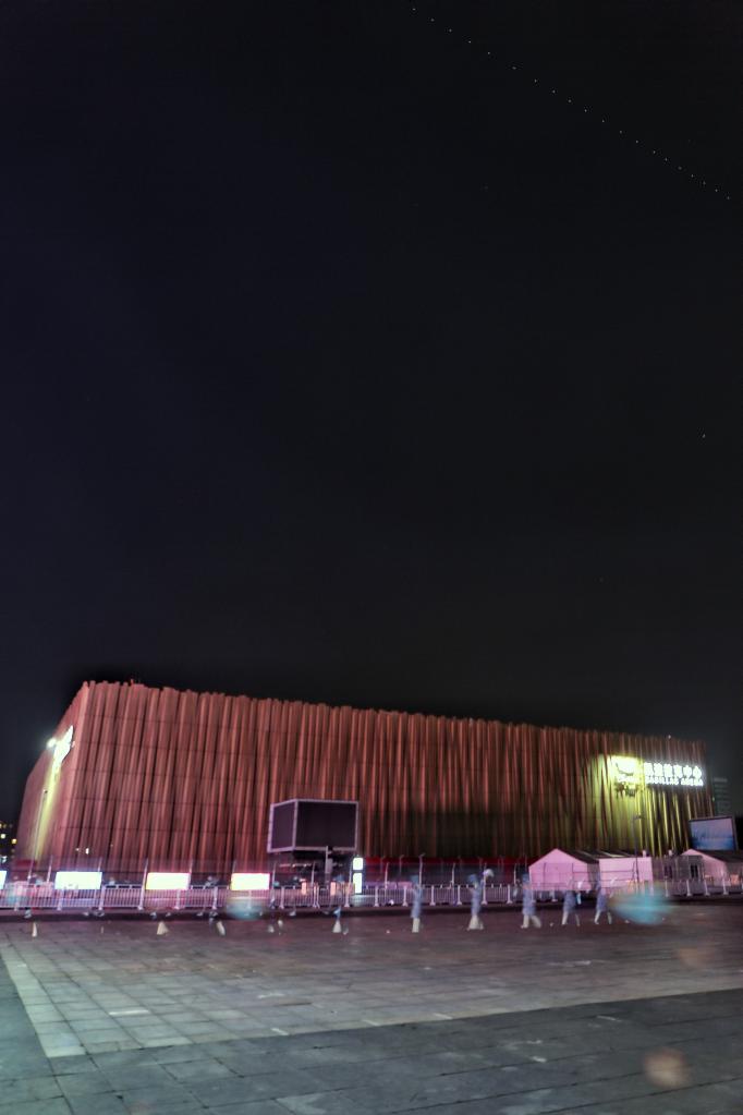 (冬奧冰球場(chǎng)館五棵松體育中心與“天宮”同框合影)