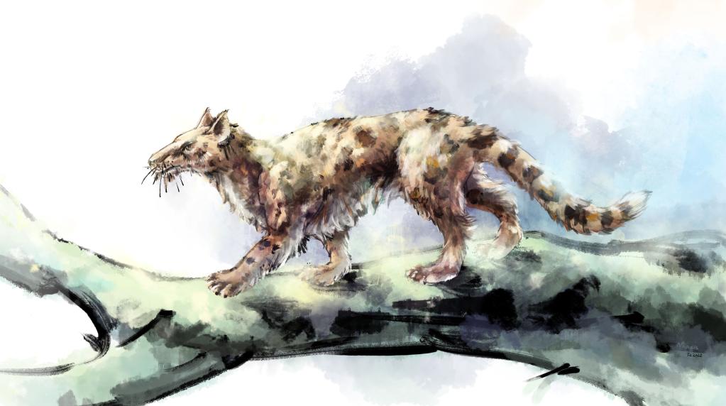 南京古生物博物館展陳部主管、古生物學(xué)博士賀一鳴介紹,包括貓科在內的所有食肉動(dòng)物的祖先,都可以追溯到4000萬(wàn)至5000萬(wàn)年前的小古貓類(lèi)。小古貓外形像貓,頭顱較長(cháng),用手掌和腳掌走路,有適合奔跑的腰椎、發(fā)達的大腦和鋒利的牙齒。隨著(zhù)小古貓的后代分化,其中的一支進(jìn)化出了現在的貓科。