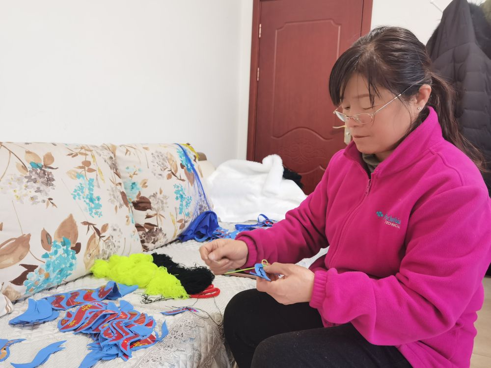 黎城縣北桂花村村民李京芬在家里趕制虎尾。新華社記者王學(xué)濤攝