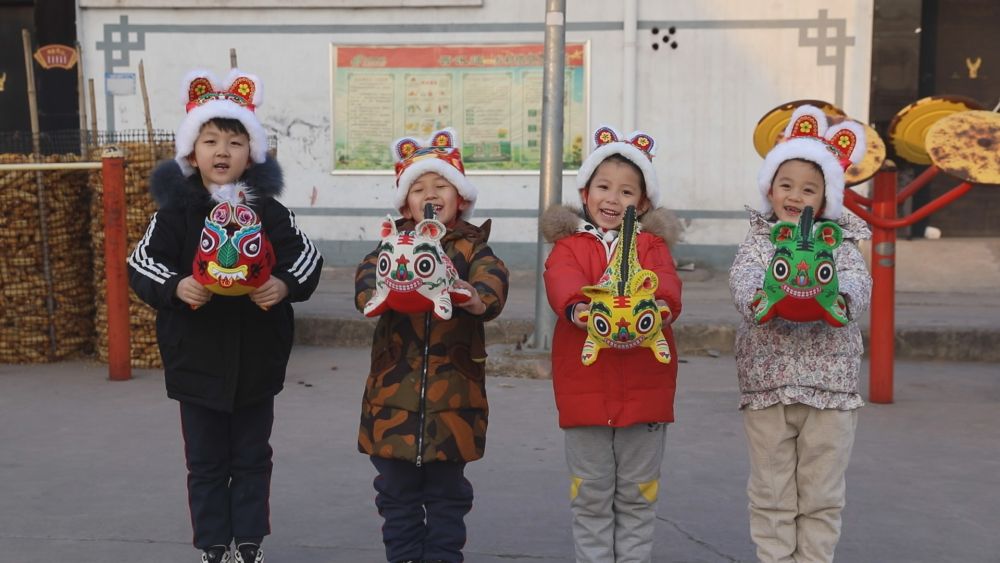 黎城縣的小朋友們與布老虎。新華社記者馬志異視頻截圖