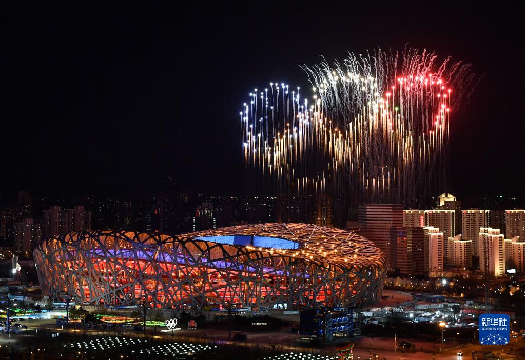2月4日,第二十四屆冬季奧林匹克運動(dòng)會(huì )開(kāi)幕式在北京國家體育場(chǎng)舉行。這是當晚的焰火表演。新華社記者 李鑫 攝