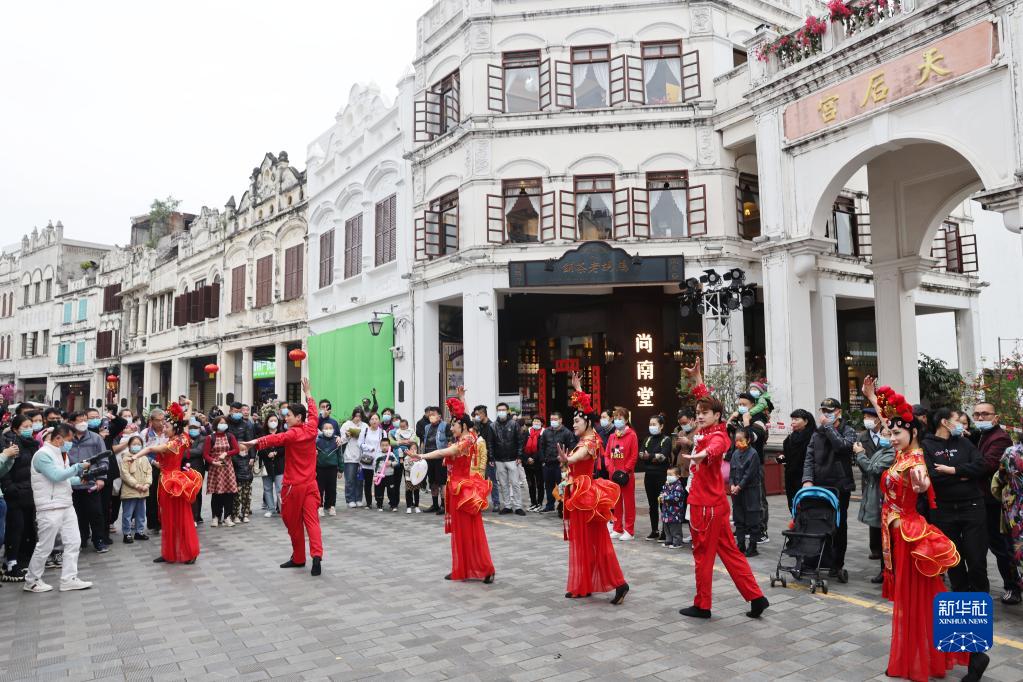 2月5日,市民在??谑序T樓老街觀(guān)看表演。新華社記者 張麗蕓 攝