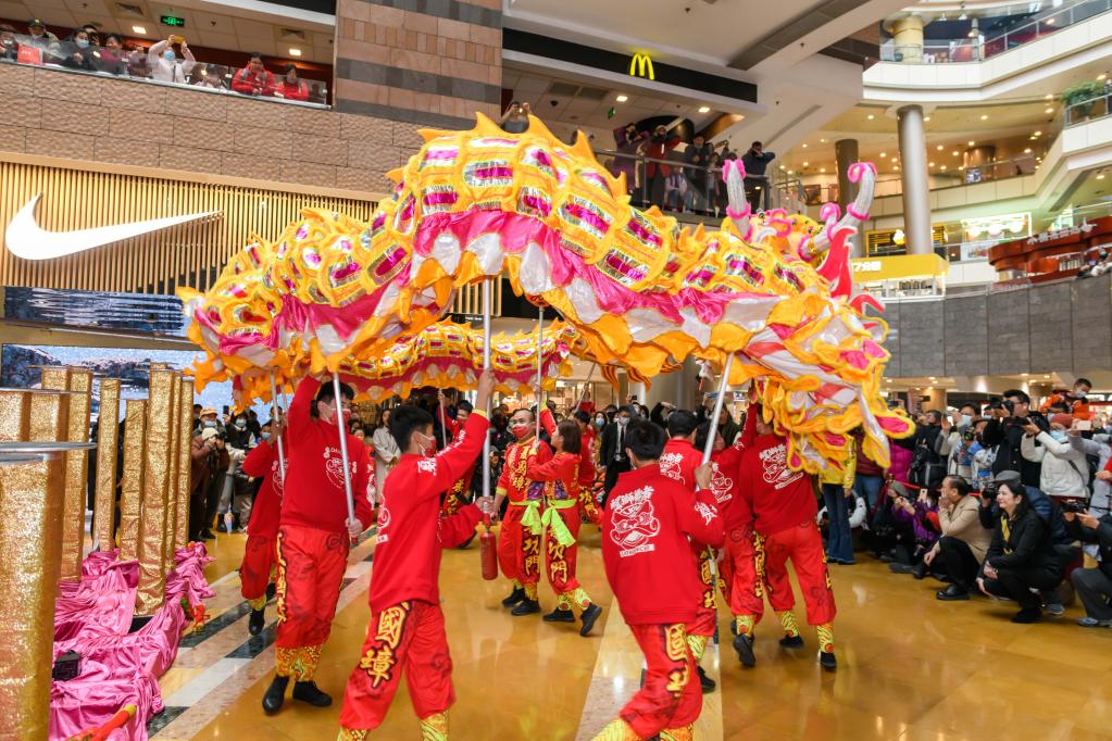 “電影《雄獅少年》的熱映更讓舞獅文化吸引了更多年輕人的關(guān)注,此次與舞獅團隊合作,將非遺文化帶進(jìn)購物中心,希望讓消費者在逛購物中心的時(shí)候也能感受傳統醒獅文化的魅力和傳承,點(diǎn)燃節日的氣氛?!鄙虾U髲V場(chǎng)總經(jīng)理徐偉杰說(shuō),節日期間,正大廣場(chǎng)開(kāi)展了一系列新春國潮系列盛會(huì ),復古獅頭老上海樂(lè )隊、?;⑵び皯?、迎春花市、“正大好市”市集等也聚集了不少人氣。