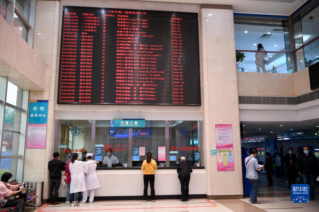福建省三明市第一醫院輪播公示藥品耗材價(jià)格(2020年11月24日攝)。新華社記者 姜克紅 攝
