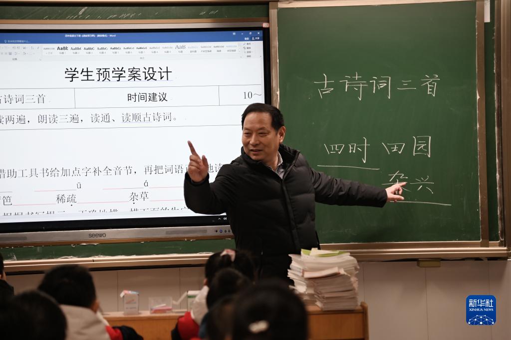 2月14日,江蘇阜寧縣阜寧師范學(xué)校附屬小學(xué)香港路校區校長(cháng)周華東給學(xué)生上課。(受訪(fǎng)者供圖)