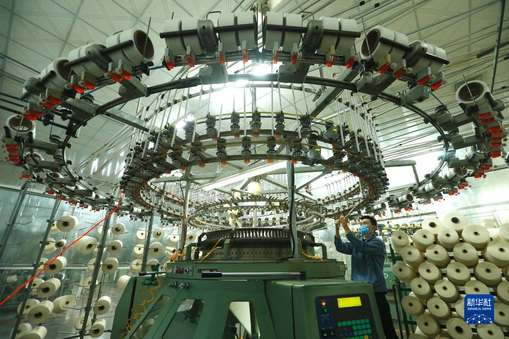 江蘇省泰州市海陵區一家公司的紡織工人在生產(chǎn)一線(xiàn)作業(yè)(2月7日攝)。新華社發(fā)(湯德宏攝)
