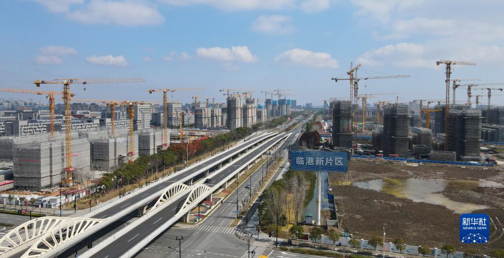 2月10日在中國(上海)自由貿易試驗區臨港新片區拍攝的住宅區建設現場(chǎng)(無(wú)人機照片)。新華社記者 方喆 攝