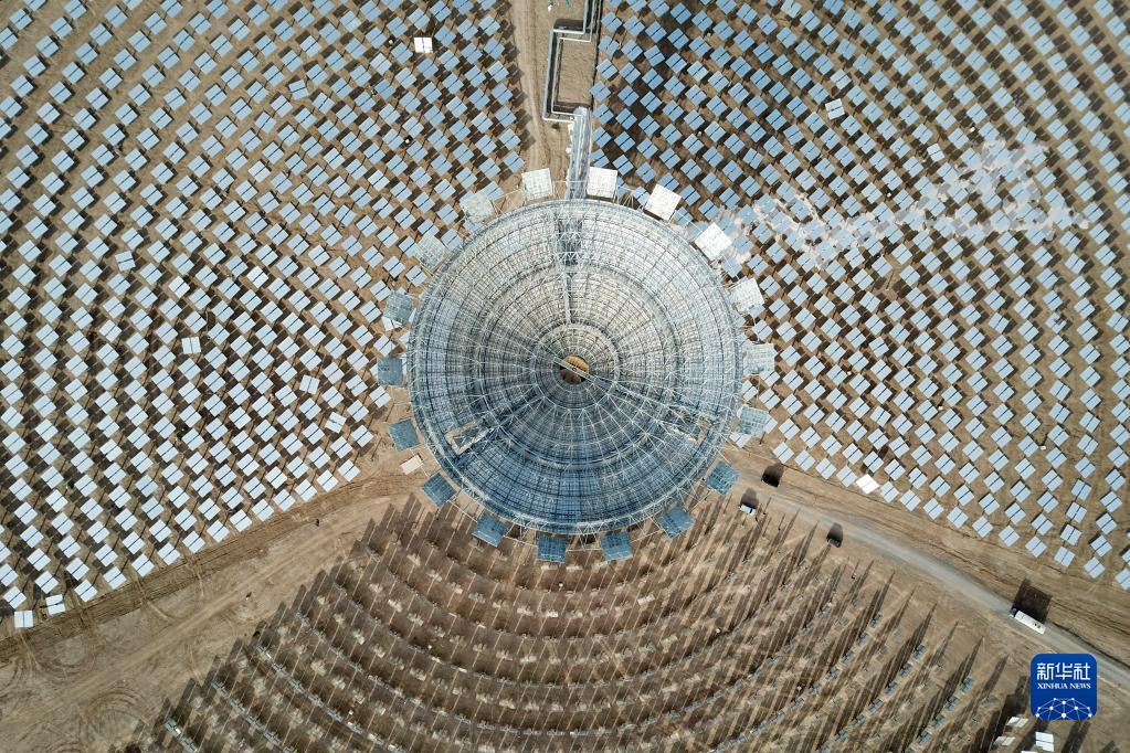 這是甘肅玉門(mén)鑫能50兆瓦熔鹽塔式光熱電站(2021年12月8日攝,無(wú)人機照片)。新華社記者 范培珅 攝