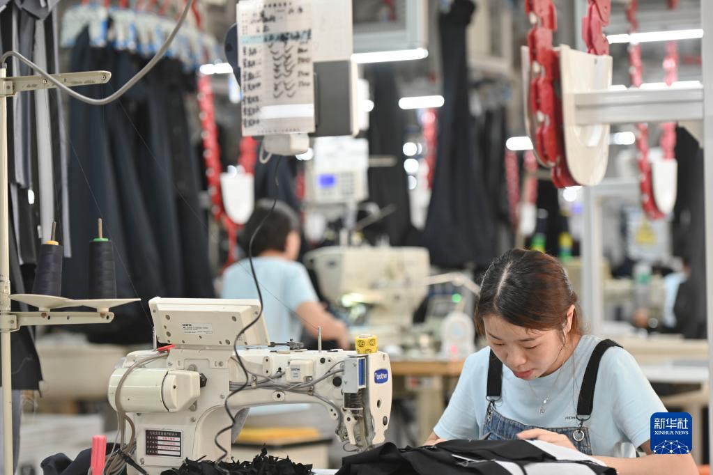 在位于福建省泉州市經(jīng)濟技術(shù)開(kāi)發(fā)區的九牧王西褲智能化生產(chǎn)車(chē)間,工人在自動(dòng)化西褲吊掛流水線(xiàn)上作業(yè)(2021年7月30日攝)。近年來(lái),泉州市稅務(wù)部門(mén)積極落實(shí)減稅降費,出臺一系列穩定工業(yè)、扶持外貿、鼓勵企業(yè)研發(fā)創(chuàng )新的政策,服務(wù)實(shí)體經(jīng)濟發(fā)展。新華社記者 宋為偉 攝