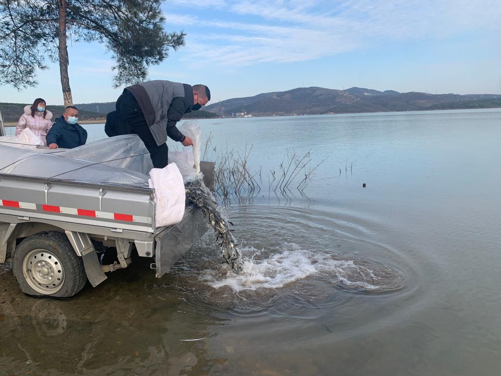 2021年12月20日,犯非法捕撈水產(chǎn)品罪的被告人進(jìn)行“增殖放流”。丹江口市人民法院供圖
