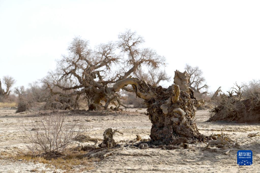 在新疆塔里木河流域,一棵枯死的胡楊又長(cháng)出了新枝(2月20日攝)。新華社記者 趙戈 攝
